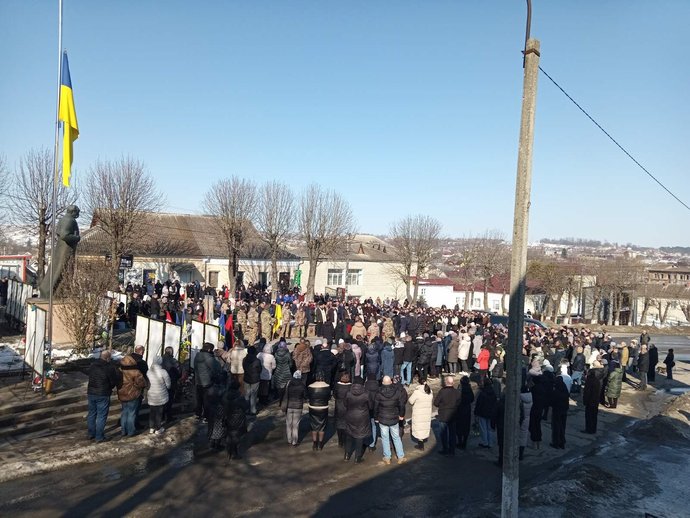 Жителі громади, рідні, друзі, провели в останню дорогу бійця. В чоловіка залишилась дружина та двоє дітей.