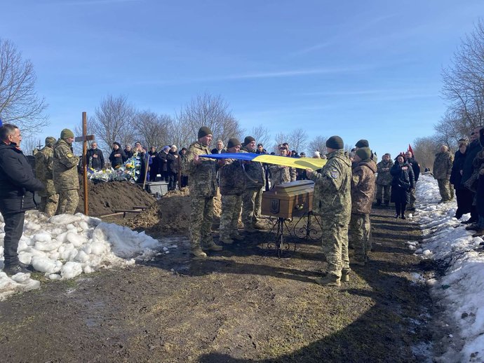 Поховали Героя на сільському кладовищі у Драганівці, звідки родом дружина покійного. На Території громади 5-6 березня оголосили днями жалоби.