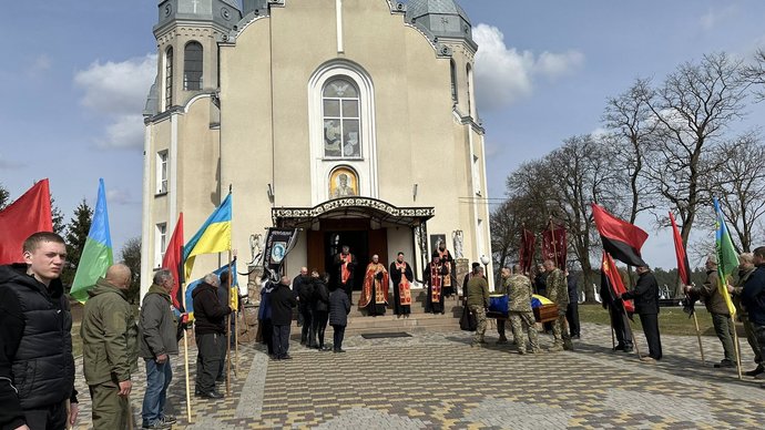 У селі Кальне провести військового в останню дорогу прийшли рідні, близькі, жителі громади, військовослужбовці. У військового залишилися мати, батько, сестри та брати.