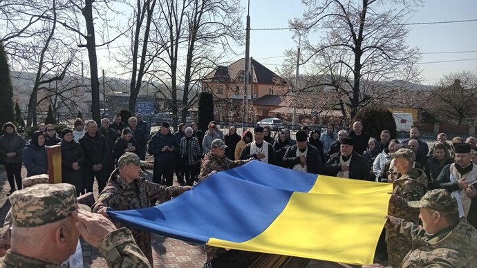 У Вишнівецькій громаді на Тернопільщині 12 березня в останню дорогу провели загиблого на російсько-українській війні захисника Юрія Качура.