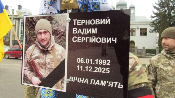 У Кременці на Тернопільщині 23 грудня в останню дорогу провели полеглого на російсько-українській війні 33-річного Вадима Тернового.