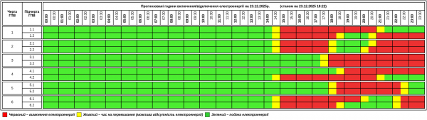 Енергетики застерігають, що протягом доби графік може змінюватися, тому споживачам рекомендують регулярно стежити за оновленнями на офіційному ресурсі підприємства.