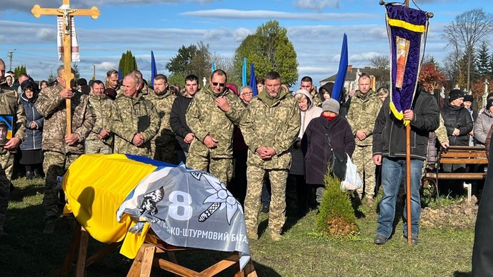 У місті Підгайці на Тернопільщині попрощалися із загиблим захисником Степаном Печінкою. Він загинув 14 жовтня внаслідок удару російського дрона-камікадзе.