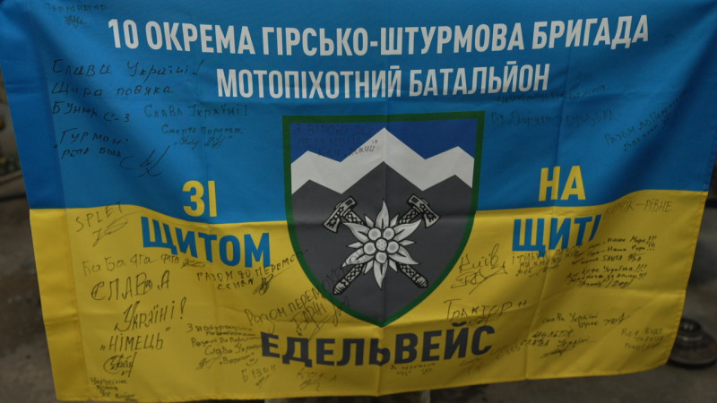 За його словами, з ним завжди прапор мотопіхотного батальйону 10-ї окремої гірсько-штурмової бригади "Едельвейс". На ньому підписи його побратимів – тих з ким служить і тих, хто загинув.