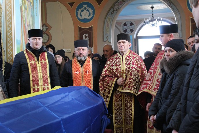 Прощання з воїном у місцевому храмі. Великогаївська громада