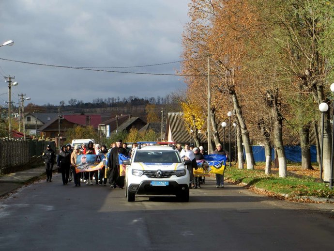 Після молитви у храмі, учасники акції пройшли вулицями міста, тримаючи державні прапори та світлини своїх рідних.