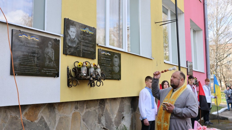 На Тернопільщині відкрили меморіальні дошки загиблим військовослужбовцям Збройних Сил України. Їх встановили на фасаді Бучацького ліцею на честь Олега Конкевича та Івана Олійника.