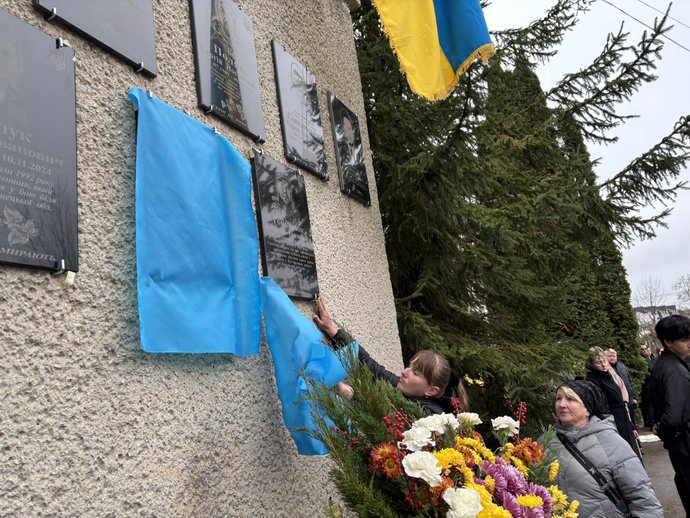 Меморіальну дошку Сергію Гоцкалюку відкрили його мама Людмила і сестра Софія Зайчук.