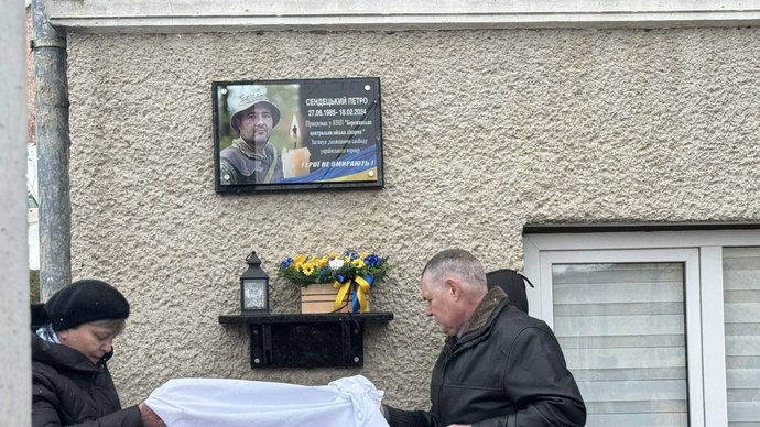 На Тернопільщині відкрили меморіальну дошку загиблому військовослужбовцю Петру Сендецькому. Її встановили на фасаді комунального некомерційного підприємство "Бережанська центральна міська лікарня".