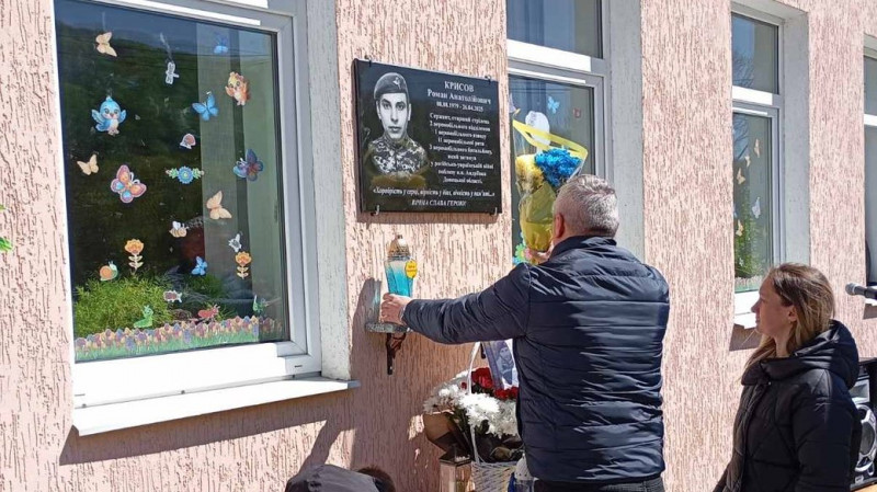 На Тернопільщині відкрили меморіальну дошку військовослужбовцю Збройних сил України Роману Крисову. Пам’ятний знак встановили на фасаді Устечківської гімназії, де він навчався.