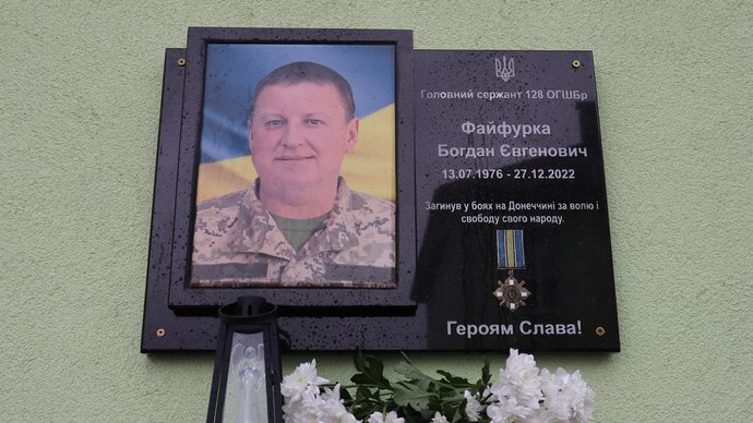 На Тернопільщині відкрили меморіальну дошку військовослужбовцю Збройних сил України Богдану Файфурці. Її встановили на фасаді Козівського ліцею №1.