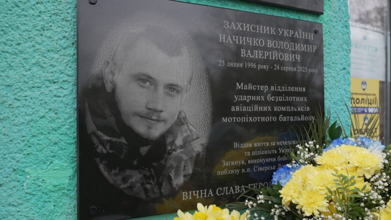 Як повідомляють кореспонденти Суспільного, меморіальна дошка Володимиру Начичку четверта, яку встановили загиблим захисникам, які навчалися в цьому закладі.