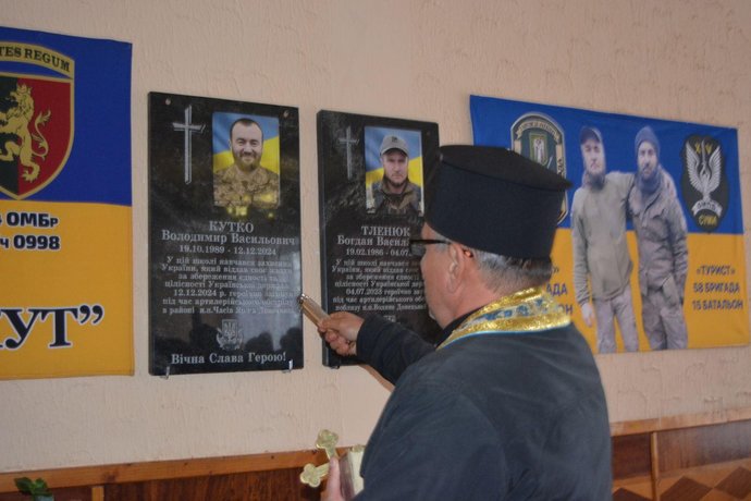 За його словами, меморіальну дошку встановили та освятили в фойє місцевого ліцею, де навчався загиблий військовослужбовець: