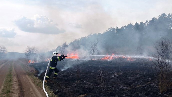 Рятувальник гасить пожежу. ГУ ДСНС в Тернопільській області