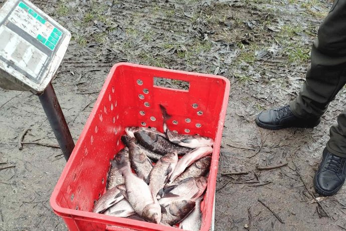 Рибу зважують перед тим, як випустити у річку. Держпродспоживслужба області