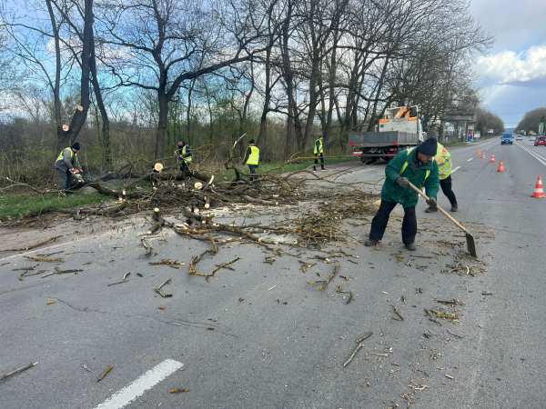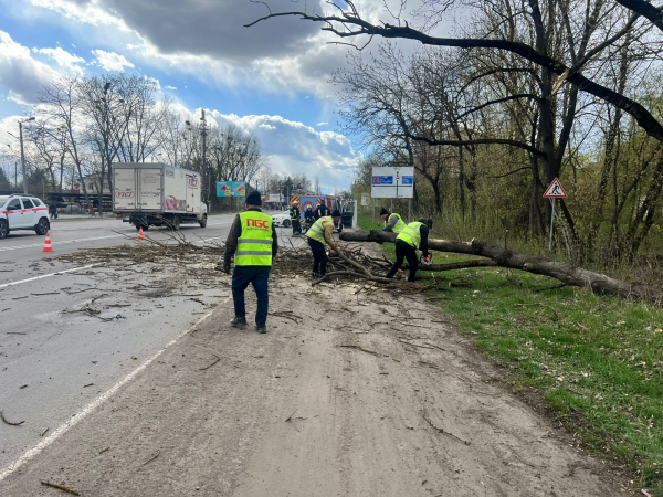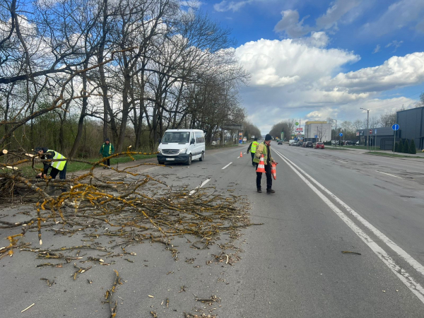 «Сьогодні сильний вітер спричинив падіння дерева на узбіччя дороги Н-18 Івано-Франківськ – Тернопіль. Це ділянка так званої Тисменицької траси. Працівники підрядного підприємства оперативно прибрали перешкоду, адже рух транспорту тут надзвичайно інтенсивний», – йдеться у повідомленні.