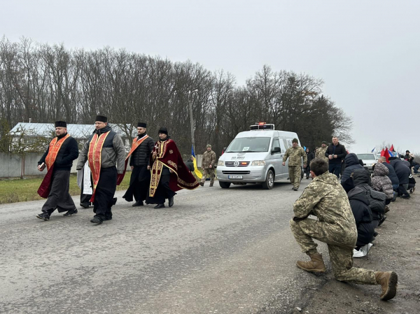 У Великоберезовицькій громаді навколішки зустріли траурний кортеж з тілом полеглого захисника України Михайла Дідуха.