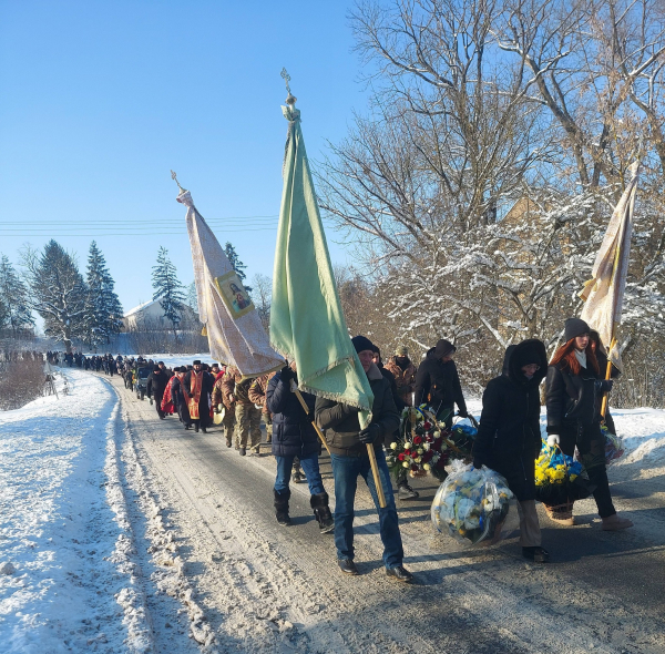 Фото: Гримайлівська селищна об'єднана територіальна громада· 17 січня жителі Гримайлова віддали останню шану 24-річному Максиму Ганчину, який загинув в боях за Україну.