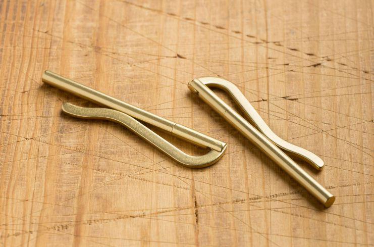 - Затискач “пруток”. Під такий тип фурнітури краще підходить шкіра товщиною 1.4-1.6 мм. Вона не дасть аксесуару постійно “пружинити”, але в місці згину шкіра також потребує стоншення. Варто брати шкіру середньої жорсткості, щоб уникнути її розтягування.