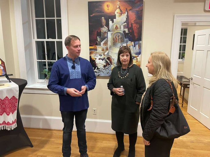 — Поїздку в США планував ще в 2023 році. Зі мною після того, як дві мої роботи президент Зеленський подарував президентам Польщі та Литви, зв'язався Іван Яресько, президент церковної громади Святого Андрія Первозванного в місті Блумінгдейл, США. Він попросив написати для їхньої парафії ікону на бронепластині, що врятувала життя нашому воїну. Так з’явилася ікона "Святий Архангел Михаїл, небесний воєвода".