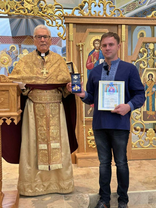 Настоятель храму отець Віктор Полярний нагородив Андрія Охоцького орденом Святого Андрія Первозванного. Іван Яресько