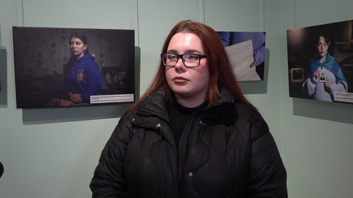 Прийшла на виставку Анастасія Крисак. Дівчина є однією з організаторок акцій у Тернополі на підтримку військовополонених та зниклих безвісти.