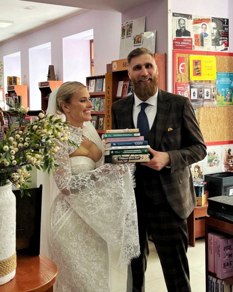 У закладі подякували парі за візит і зазначили, що раді розділити з молодятами їхню важливу подію. Також працівники книгарні побажали подружжю щастя та любові.