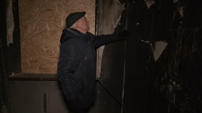 "Все погоріло. Тут індивідуальне опалення в мене було, познімали батареї. Нічого нема, ні котла нема. Не знаю, як дальше тут бути. Обходили газівники, дивились труби. Чи цілі вони, чи не цілі. Сказали, що добре. Пробують включати якесь опалення. Яке тут опалення включати, як тут ні вікон нема, ні дверей".