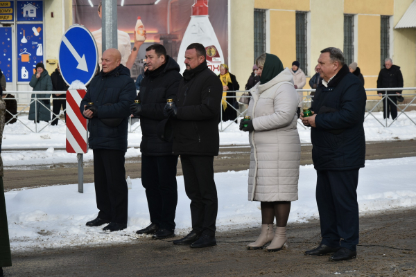 «Зі сльозами на очах, на колінах і з запаленими лампадками люди зустріли домовину з тілом Героя», – йдеться в повідомленні міської ради.