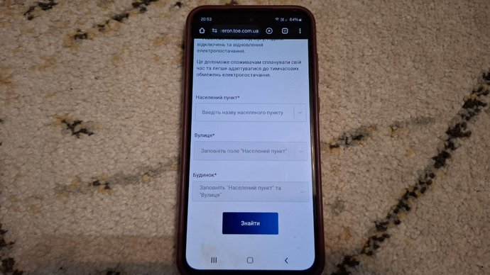 Сторінка персоналізованого пошуку графіка відключень електроенергії. Суспільне Тернопіль