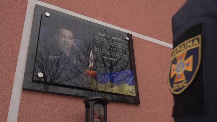 Меморіальна дошка полеглому рятувальнику Сергію Гоцуляку. Пожежно-рятувальна служба Тернопільщини