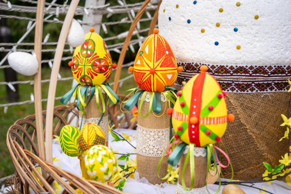 Окремі елементи декору присвятили Україні та подяці захисникам. У святковому оформленні поєднали великодню символіку та акценти, пов’язані з війною і вдячністю військовим.