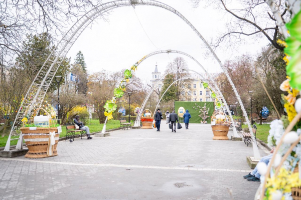 На оприлюднених світлинах видно великі писанки з орнаментами, декоративні кошики з пасками, квітами й зеленню, а також тематичні стенди. Частину локацій оформили як місця для прогулянок і фотографування.