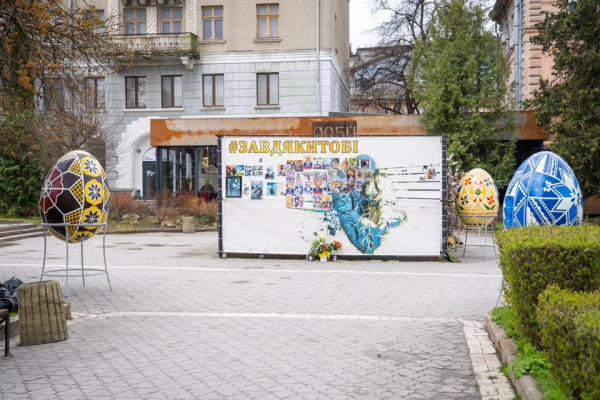 У різних частинах міста встановили великодні інсталяції. Тернопіль прикрасили декоративними писанками, кошиками, святковими композиціями та фотозонами.