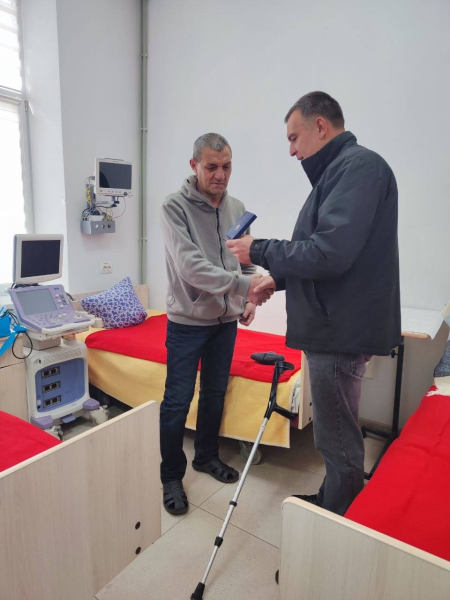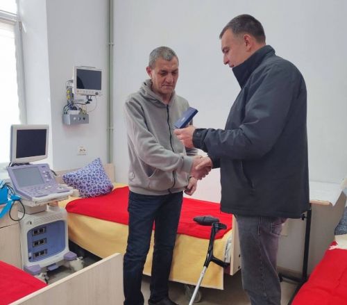 Зазначається, що у святкові дні міський голова Віталій Фреяк відвідав воїна та вручив йому почесну відзнаку «За честь і відвагу».