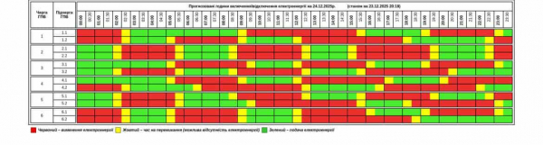 На завтра, 24 грудня, енергетики уже оприлюднили графіки – картина не краща – по 11-12 годин без світла фактично усі групи.