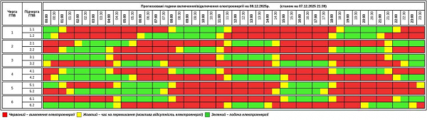 Актуальний графік на 8 грудня, станом на вечір 7 грудня.