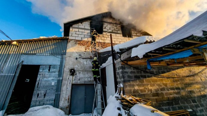 Горіла пилорама поблизу Тернополя, 17 січня 2026 року. Пожежно-рятувальна служба Тернопільщини