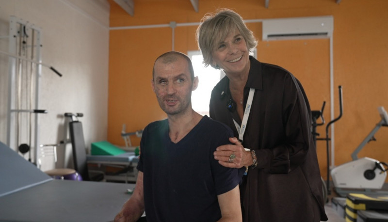 Джон і Патриція в реабілітаційному центрі обласної лікарні, спілкуються з військовими Суспільне Тернопіль