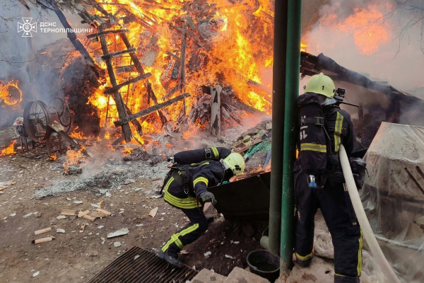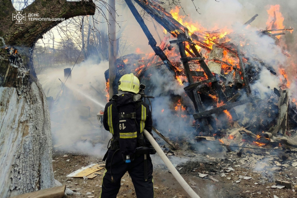 На Тернопільщині горів навіс із дровами у селі Великий Глибочок, площа пожежі склала близько 100 м².