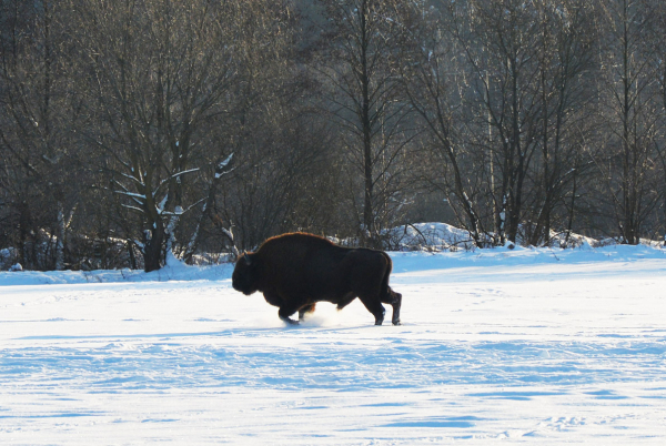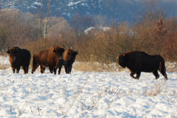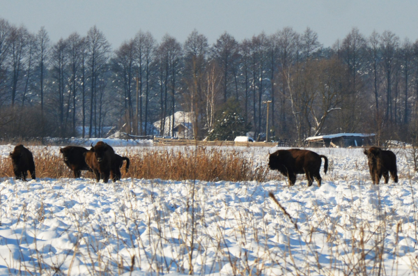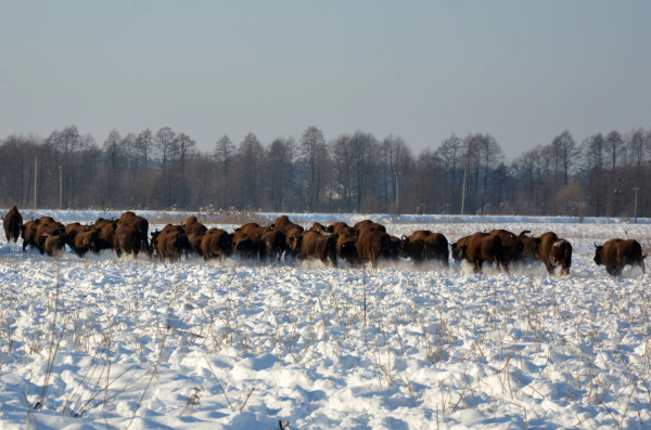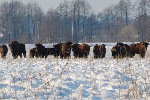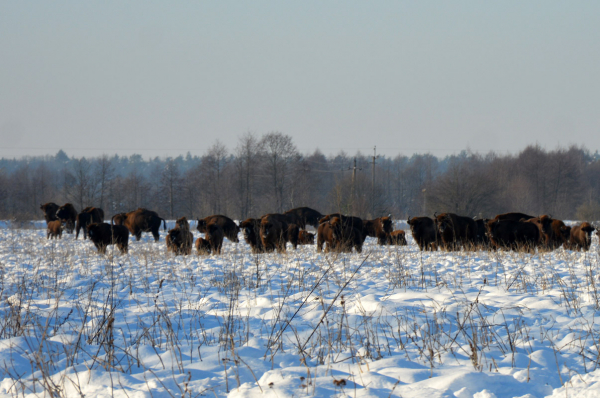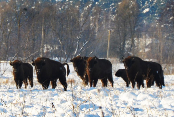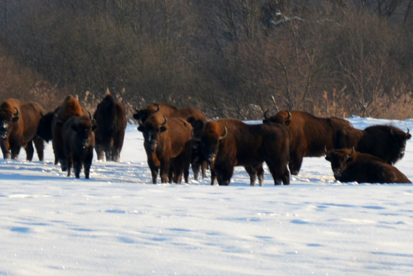 фото ілюстративне з вільних джерел Стадо зубрів вдалося сфотографувати на засніженому узліссі.