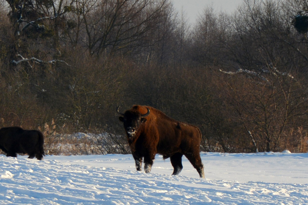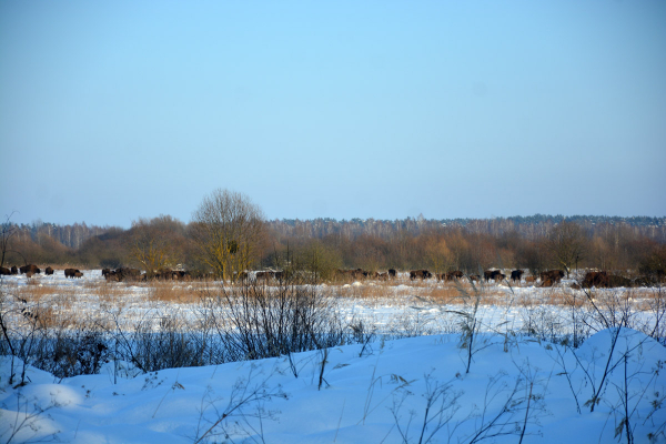 «У нинішні морозні та засніжені дні на полях та вкритих масивним снігом луках, на узліссях та лісами Бродівської громади Золочівського району Львівщини бродить стадо ось таких чудових велетнів», – зазначили у природному парку.