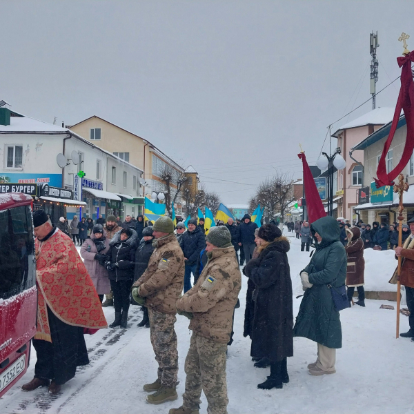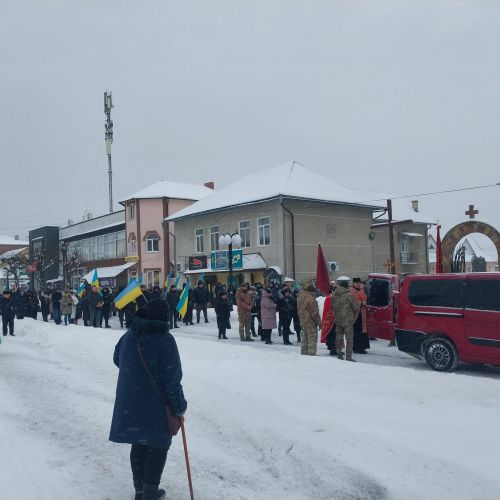 Жителі Борщівської громади на колінах зустріли та провели до похоронного храму кортеж із тілом загиблого захисника України Олександра Міського, жителя міста Борщева.