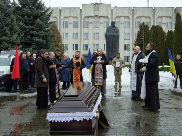 На площі Героїв Майдану в Шумську військові урочисто занесли труну під супровід сакральної мелодії «Плине кача». Священники відслужили панахиду та разом із громадою помолилися за упокій душі захисника. Чин поховання та віддання військових почестей відбудеться 24 лютого об 11:00 у селі Потуторів.