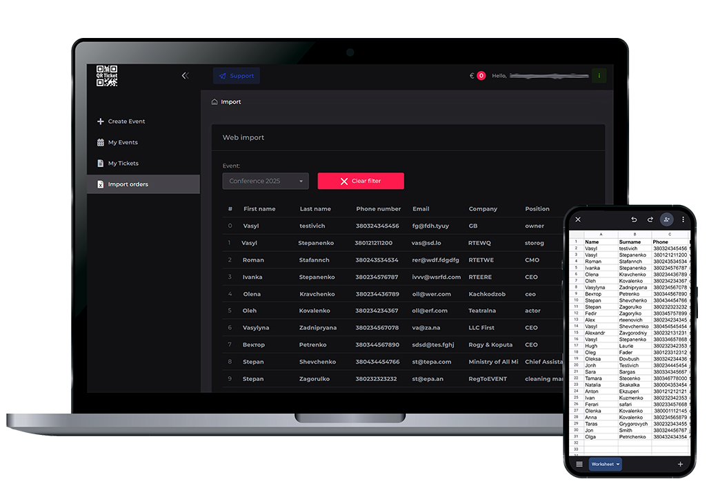 Ви завантажуєте свій готовий список учасників, сплачуєте фіксовану суму (наприклад, 10 євро за 500 квитків) і отримуєте пакет персоналізованих QR-кодів. Це максимально швидке та дешеве рішення для закритих корпоративних заходів або безкоштовних презентацій. Тут немає аналітики чи маркетингу – лише функція ідентифікації.