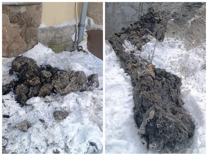 "Ми діставали з каналізаційної мережі, точніше, з каналізаційного колодязя, жири. Вони там цементуються, робляться шматками жиру. Всі звикли бачити жир рідким, таким, як олія, але це не так. В каналізаціях він перетворюється на брили. Ми з цим боремося, як можемо.
