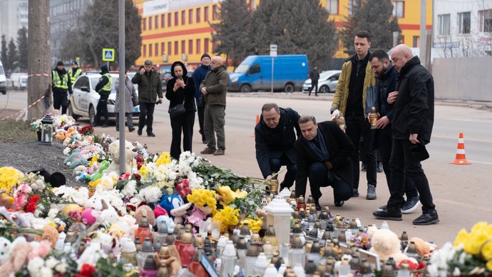Голова представництва UNICEF в Україні Мунір Мамедзаде та керівник програм Львівського офісу UNICEF Євген Кузнецов відвідали місце вшанування пам'яті біля зруйнованого будинку у Тернополі, в який 19 листопада влучила російська ракета.