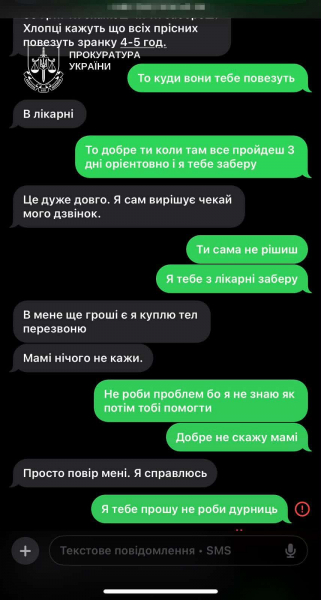 У повідомленнях чоловік переконував, що потребує допомоги, яку нібито може організувати через знайомих. Йшлося про виготовлення документів для звільнення з частини через необхідність догляду за родичем, переведення до іншого підрозділу, придбання спорядження та медикаментів, а також оформлення страхових виплат.