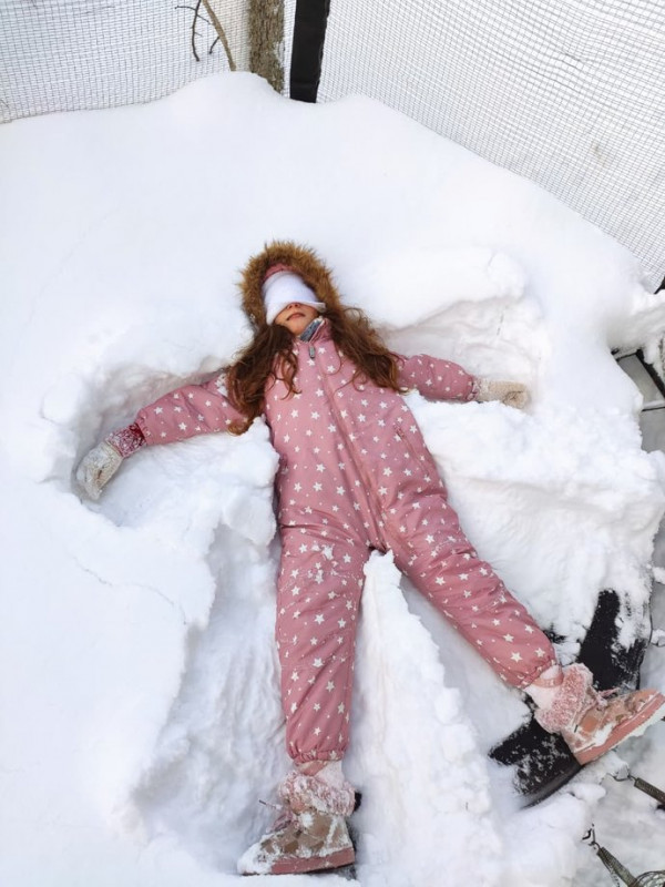 Дитина робить снігового янгола. Суспільне Тернопіль