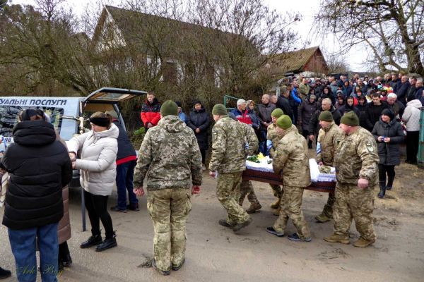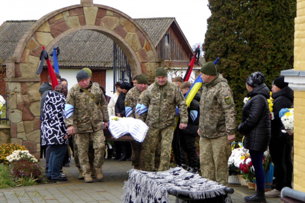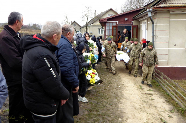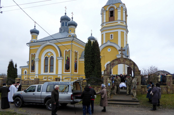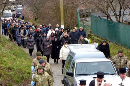 Панахиду відслужили у с. Биківці у церкві Різдва Пресвятої Богородиці. Під супровід оркестру жалобна процесія пройшла вздовж села до місцевого кладовища. Востаннє нашому земляку віддали військові почесті.